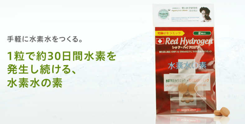 自宅に居ながら水素水をつくる事ができる、水素水の素「レッドハイドロゲン」。
